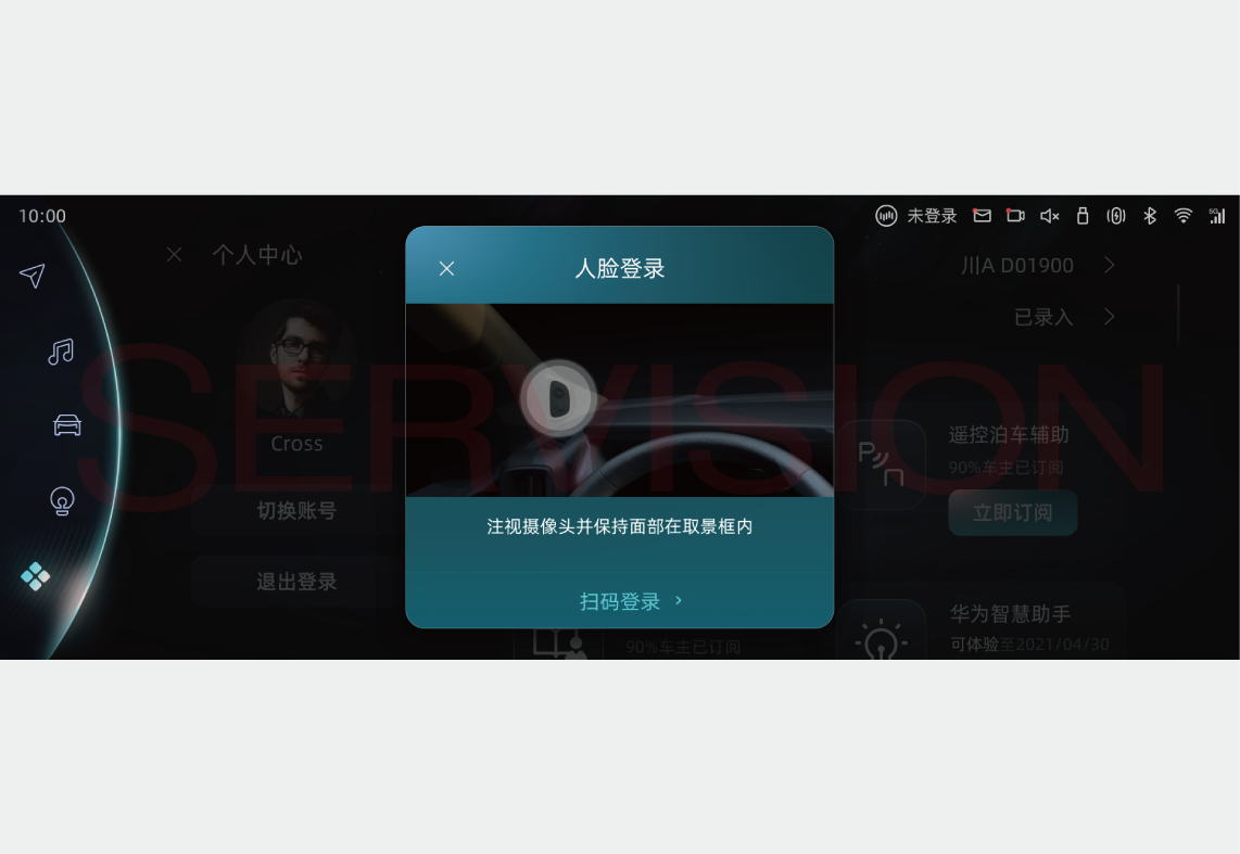 登录后即可录入人脸信息,下次上车后,车辆将扫描人脸并直接登录,自动完成车辆设置,使用专属座舱服务。