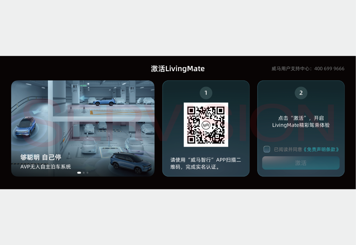扫描多媒体显示屏中二维码,按照手机提示步骤完成实名认证即可绑定车辆。