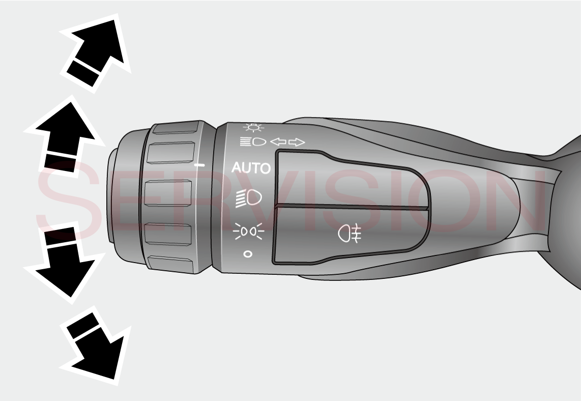 右转弯或向右变道时,向上拨动灯光拨杆开关至第一个位置,右转向灯闪烁三次后关闭;拨动灯光拨杆开关到底,右转向灯一直闪烁。